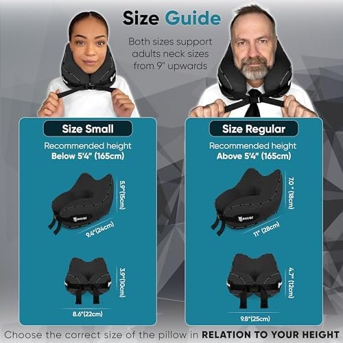 SOFT YET SUPPORTIVE WITH DUAL ADJUSTABLE STRAPS – The unique ergonomic shape of our neck pillow travel cushion was developed in Great Britain using our VISCO-ELASTIC memory foam. The SNUGL memory foam travel pillow is soft, yet supporting providing you with everlasting comfort for uninterrupted sleep. The dual adjustable buckle straps on the travel pillow memory foam cushion allow you to find the perfect fit for your neck size. Our neck support pillows support adults neck sizes from 9″ upwards.