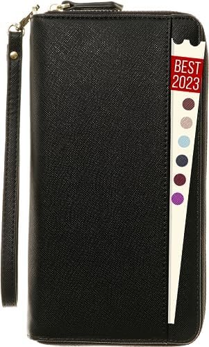 ZIP AROUND womens travel wallet case – nothing will fall or slip out by accident. REMOVABLE STRAP keeps your hands free to hold other things. CONVENIENT OUTSIDE POCKET for a last minute note, cash or anything else you might need on the run