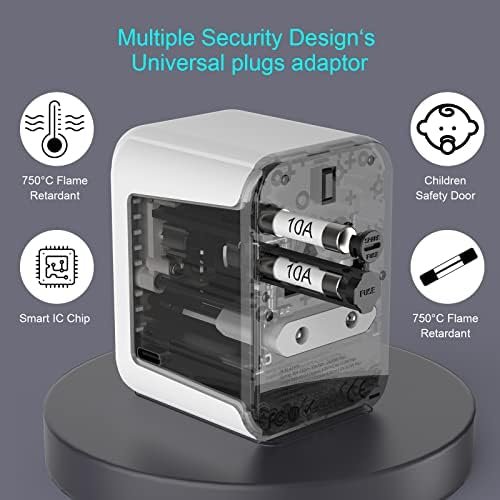【Multiple Security Design‘s Universal plugs adaptor】This universal adapter socket worldwide comes with two overload fuses (10A), which supports more safety for large power devices. Built with rugged internal hardware to prevent electric shock. Double protection brings safety to your travels.